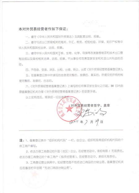 公司代理出口權(quán)證書: